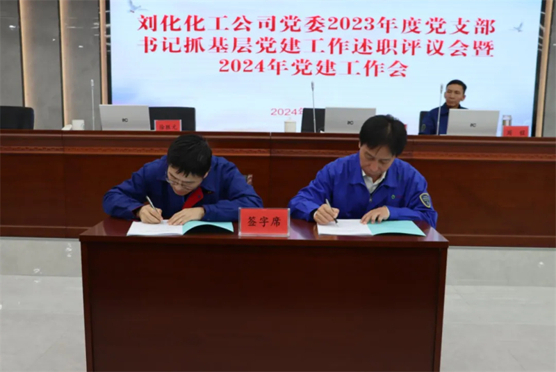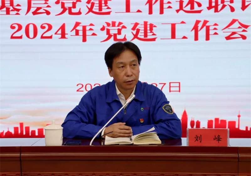 会上,,,,,,,,党委书记、董事长刘峰代表公司党委与下层党支部签署《2024年度党建事情责任书》,,,,,,,,各下层党支部书记做述职讲话,,,,,,,,公司向导作点评,,,,,,,,与会同志对党支部书记抓下层党建事情履职情形举行了现场测评。。。。。。