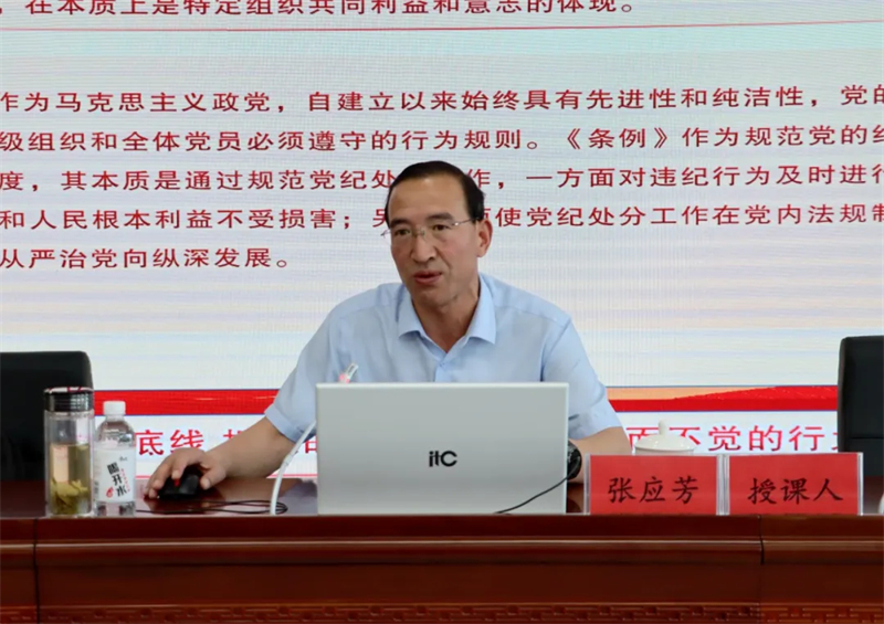 张应芳以“知敬畏 存戒律 守底线 把铁的纪律内化为日用而不觉的行为准则”为主题,,,,,细密团结企业生产谋划、项目建设、清静治理现实从提高政治站位,,,,,搞清晰为什么要学习纪律处分条例;;;;;;;掌握学习重点,,,,,周全掌握六大纪律修订亮点特色;;;;;;;强化纪律约束,,,,,自觉把铁的纪律内化为日用而不觉的行为准则;;;;;;;自觉继续实干,,,,,着力塑造企业高质量生长新动能四个方面划分做了深刻阐释。。。。。