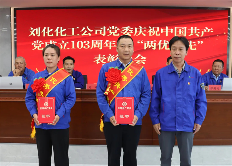 大会在嘹亮的国歌声中拉开帷幕,,, ,,,,,党委副书记、工会主席李维江宣读《刘化化工公司党委关于表扬优异共产党员的决议》,,, ,,,,,并做了六月份党建事情总结及七月党建事情安排,,, ,,,,,与会向导为优异共产党员颁奖,,, ,,,,,党委书记、董事长刘峰代表公司党委向受表扬的优异小我私家体现热烈祝贺,,, ,,,,,向加入表扬大会的同志及坚守在公司各岗位的宽大党员,,, ,,,,,致以节日的问候,,, ,,,,,并团结公司党的建设、清静环保、项目建设、生产谋划等中心事情提出详细要求。。 。。。。。