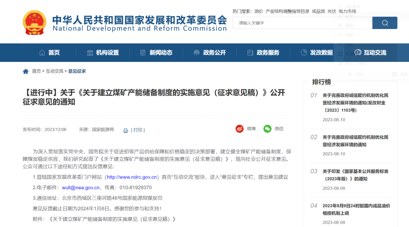 12ÔÂ6ÈÕ,¹ú¼Ò·¢¸ÄίÐû²¼¡¶¹ØÓÚ½¨Éèú¿ó²úÄÜ´¢±¸ÖƶȵÄʵÑéÒâ¼û(Õ÷ÇóÒâ¼û¸å)¡·,ÒÔϼò³Æ¡¶Òâ¼û¸å¡·¡£¡£¡£¡£¡£¡£