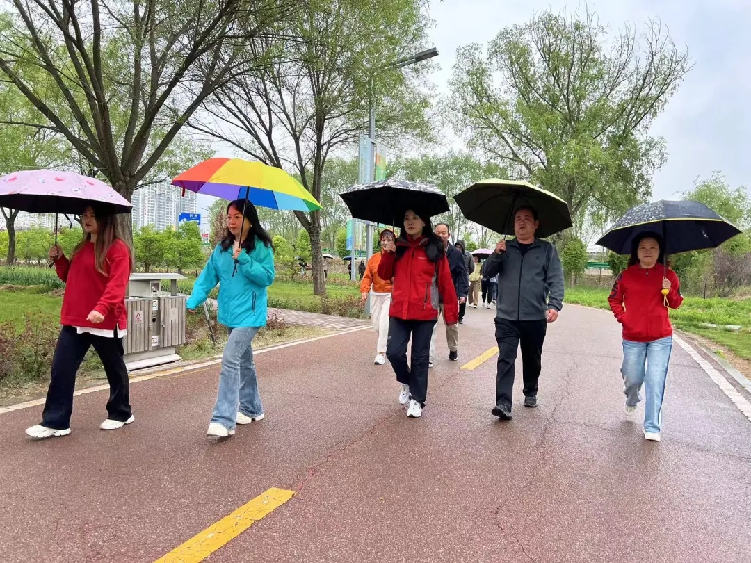 草长莺飞季,杨柳拂堤岸。。。。。。此次徒步以彩陶广场为起点,途经悦园,最后返回彩陶广场,全程8公里。。。。。。加入运动的干部职工热情高涨,意气风发,步道两侧,碧草青青,繁花吐蕊。。。。。。一起上,各人浏览着漂亮的自然景物,呼吸着新鲜的空气,在轻松愉快的气氛中知无不言,分享着事情和生涯中的趣事,享受着运动带来的身心愉悦,各人相互勉励、相互资助,沿着林荫蹊径向目的迈进。。。。。。