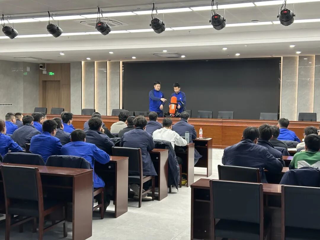 公司消防队组织开展手持式干粉灭火器、正压式空气呼吸器的使用培训,在场职工举行现场学习操作。。。。。。。。